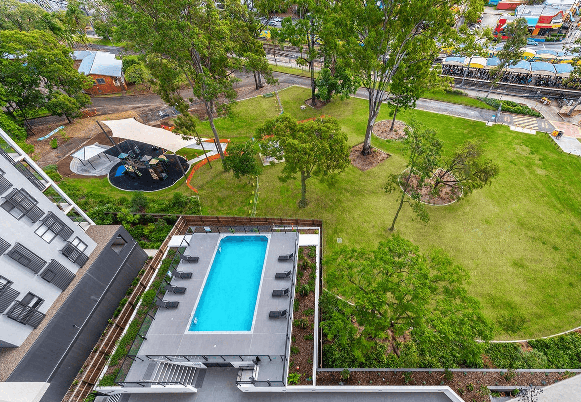 Central Park,这栋公寓就在Indooroopilly火车站旁边,交通非常方便,门口坐公交车20min到昆士兰大学。购物中心旁边,生活也方便很多。